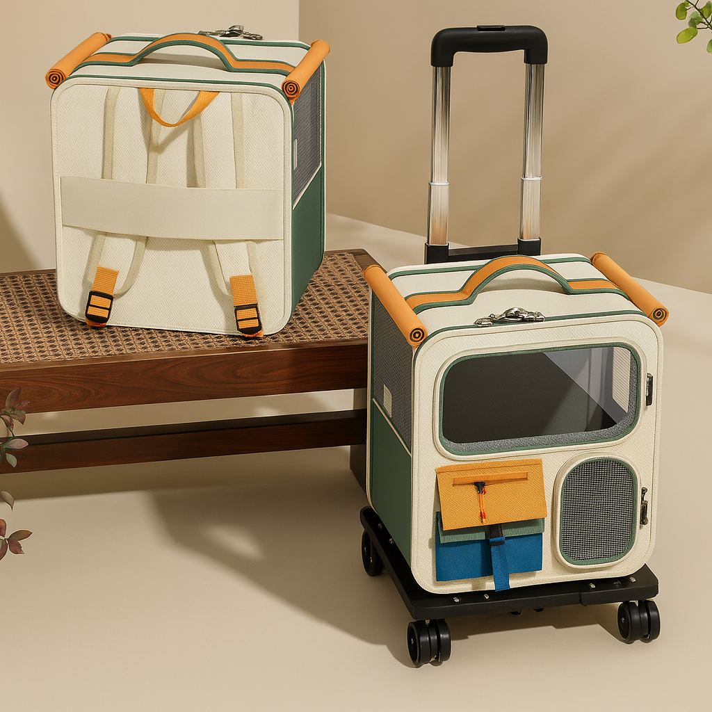 🚗 Rodas Universais e Silenciosas As rodas giratórias de 360° deslizam suavemente em qualquer direção, facilitando a locomoção em aeroportos, shoppings, ruas e muito mais, tudo isso garantindo um passeio sem solavancos para o seu pet.